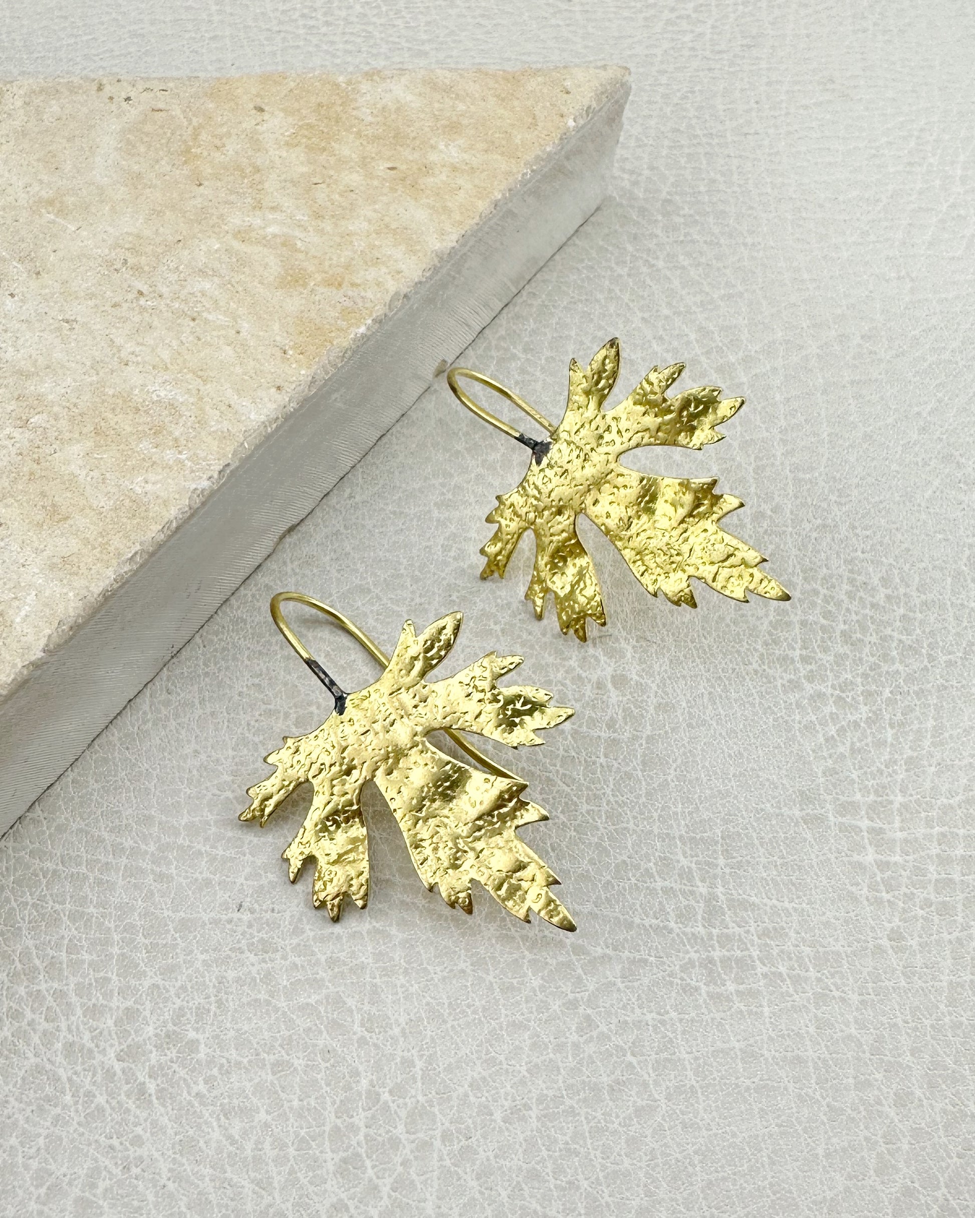 These Raw Brass Maple Leaf Earrings capture all the cozy, golden fall vibes.