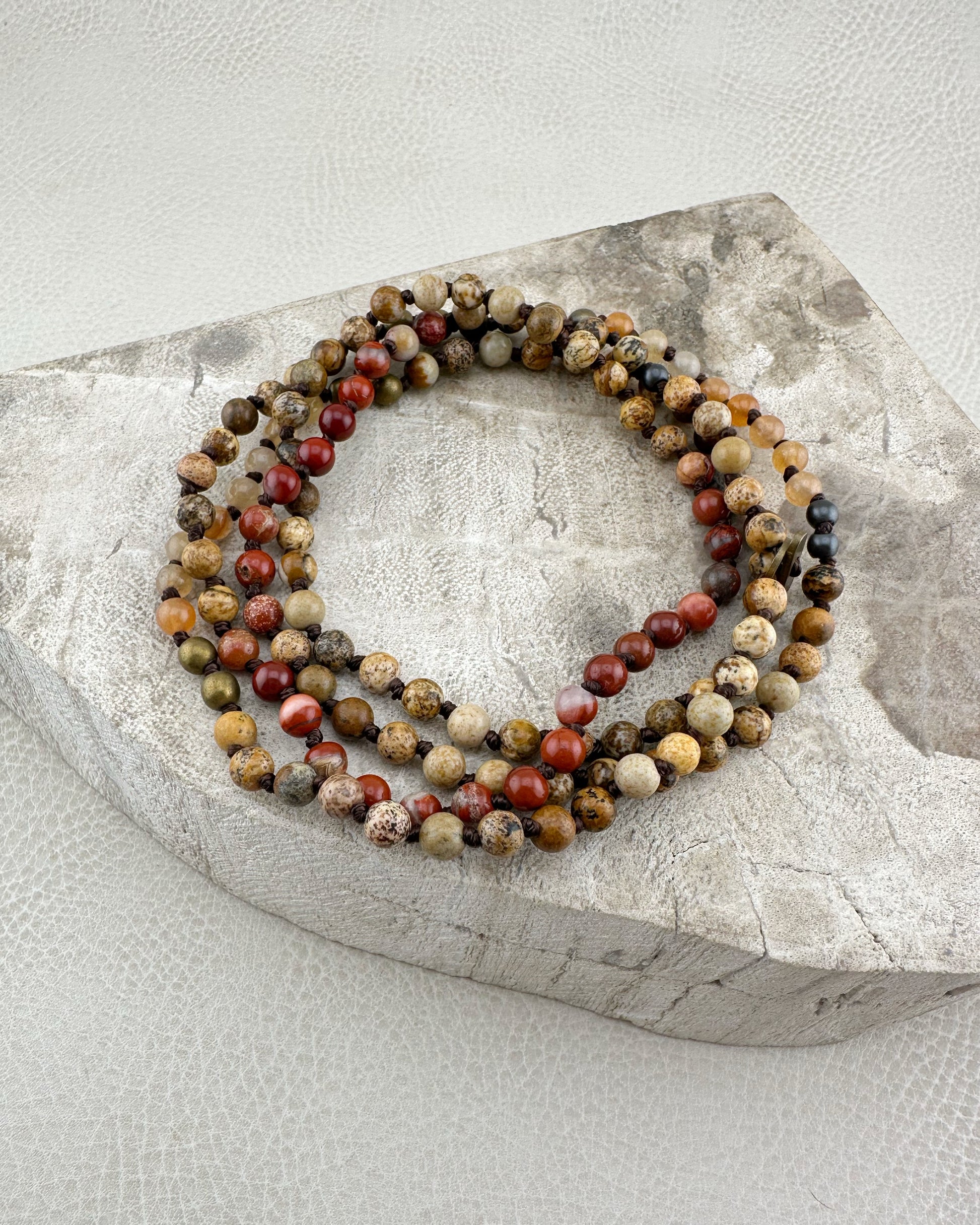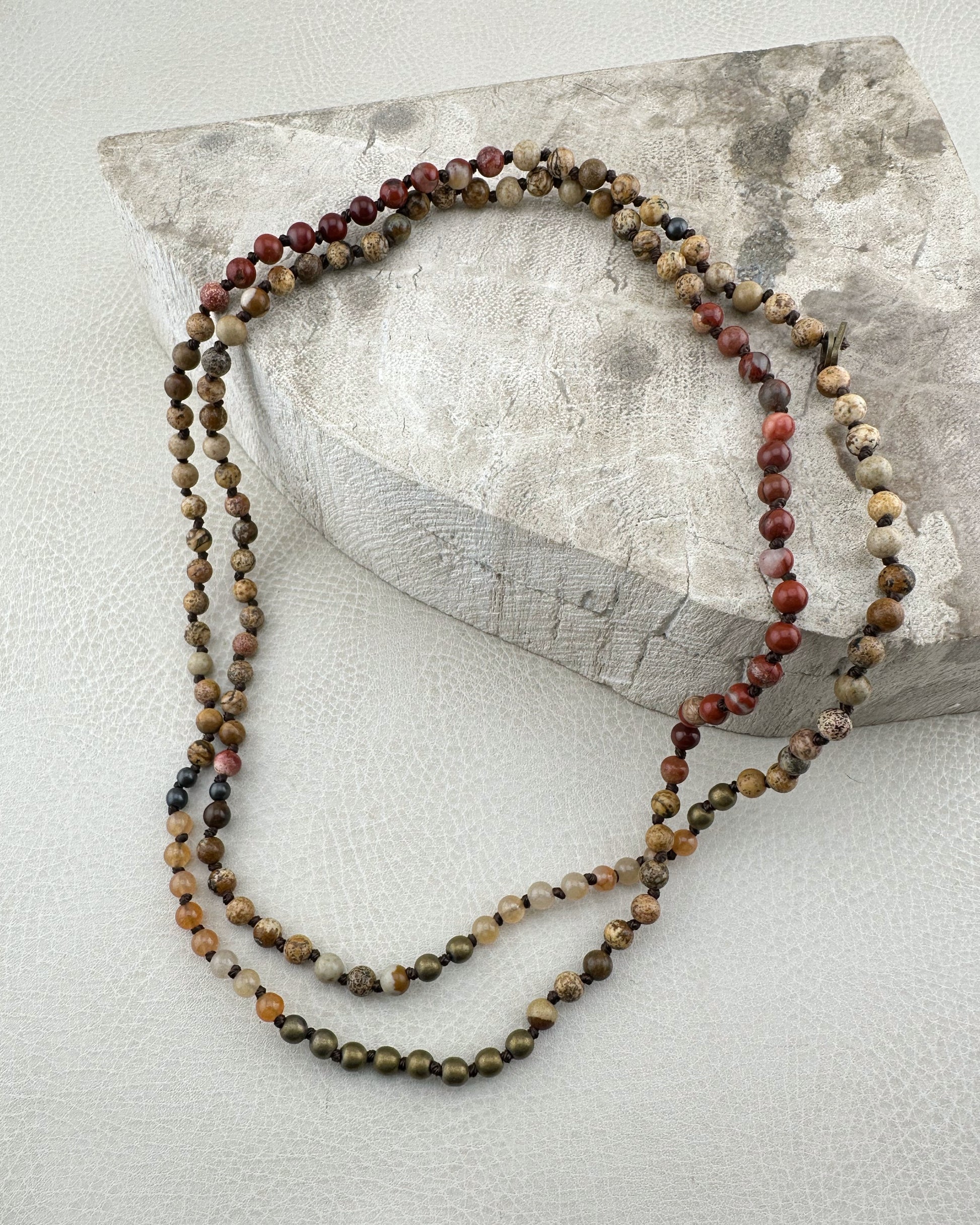 Enhance your wardrobe with the playful and eccentric Red Jasper Knotted Chain. This one-of-a-kind accessory showcases gemstones knotted onto a chain and comes with a toggle clasp for adding personalized pendants and charms. Wear it as a necklace or wrap it around your wrist for versatility. You can even wear it long or double it up to change up the look. Plus, the natural and earthy vibes will add a supportive touch to your style.
