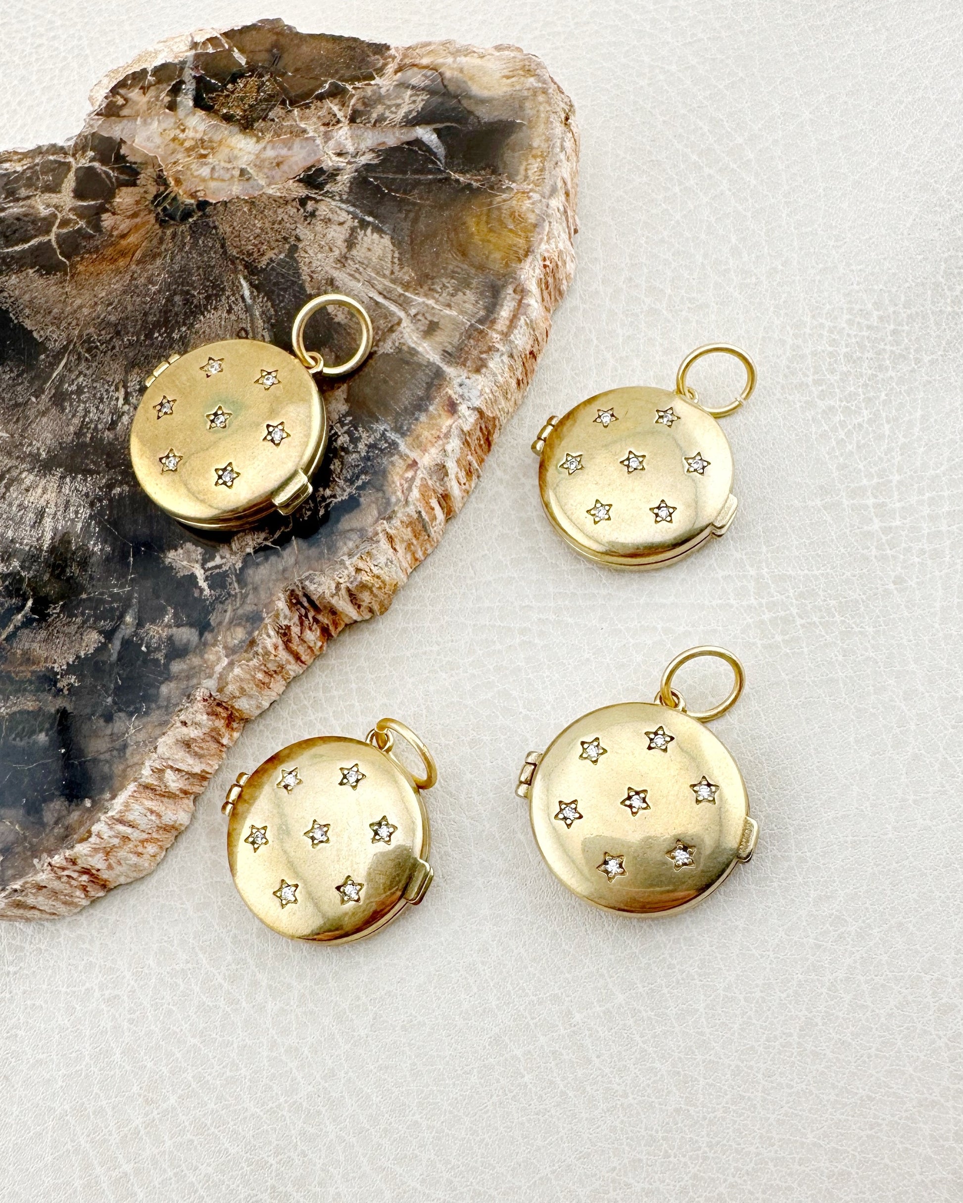 Embrace the magic of the night with our Starry Night Brass Locket. Featuring a dazzling crystal diamond star design, this charming locket allows you to add your favorite picture and mix and match with our gemstone pendants. Get yours today and add a touch of celestial beauty to your jewelry collection!